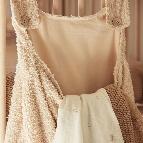 Met de bed opbergzak Boucle Naturel zijn kleine babyspullen steeds mooie opgeruimd en handig binnen handbereik. Deze opbergzak hang je eenvoudig aan het bed of het park; hij fleurt meteen de hele kamer op. De bed opbergzak is praktisch en ideaal voor het bewaren van klein speelgoed, pampers en andere spullen.