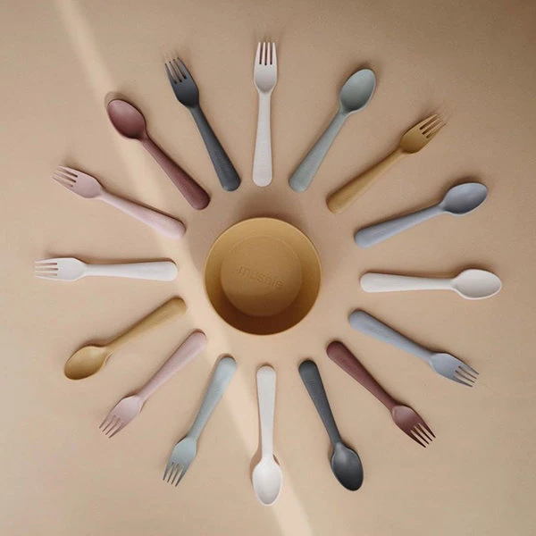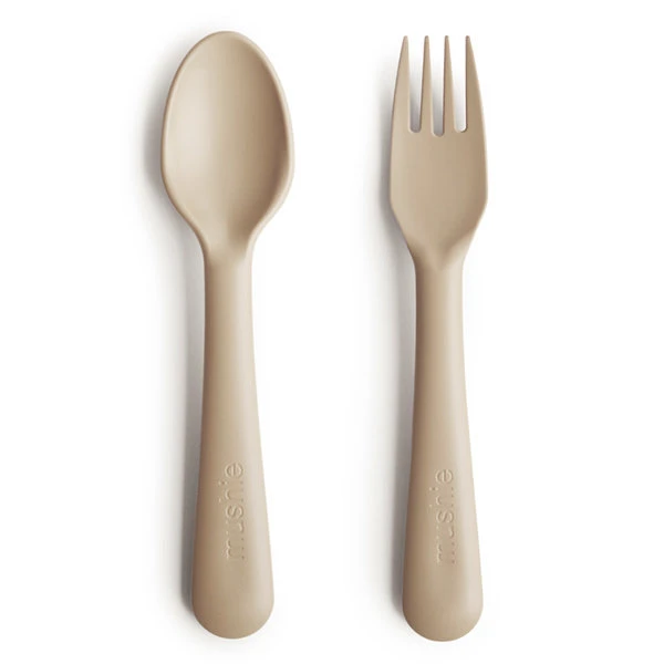 Kenmerken van deze Mushie vork en lepel – Vanilla: