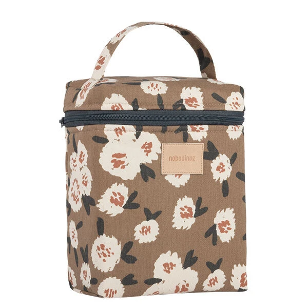 Met deze geïsoleerde koeltas in prachtig Camellia design uit de Nobodinoz Hyde Park collectie, kan je drinkflessen, babyflessen of snacks voor jezelf en je kinderen vervoeren. Ideaal om warm en koud te houden. De koeltas heeft een capaciteit voor twee flessen en enkele kleine potjes. Binnenin is de koeltas voorzien van isolatiefolie, ze sluit met een rits en heeft een handvat aan de bovenkant. Deze praktische koeltas past dankzij zijn strakke vormgeving en neutrale kleur perfect bij elke stijl.