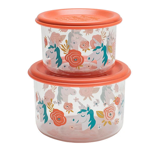 Deze kleine snackdoosjes met leuke Unicorn print zijn zeer praktisch voor het vers en smakelijk houden van eten. De snackdoosjes zijn licht, stapelbaar, duurzaam en lekvrij. Ideaal voor een gezonde portie fruit of kleine snack. De snackdoosjes kunnen gebruikt worden voor het bewaren, invriezen en opwarmen van voeding. De ideale snackdoosjes om mee te nemen naar school of en picknick.